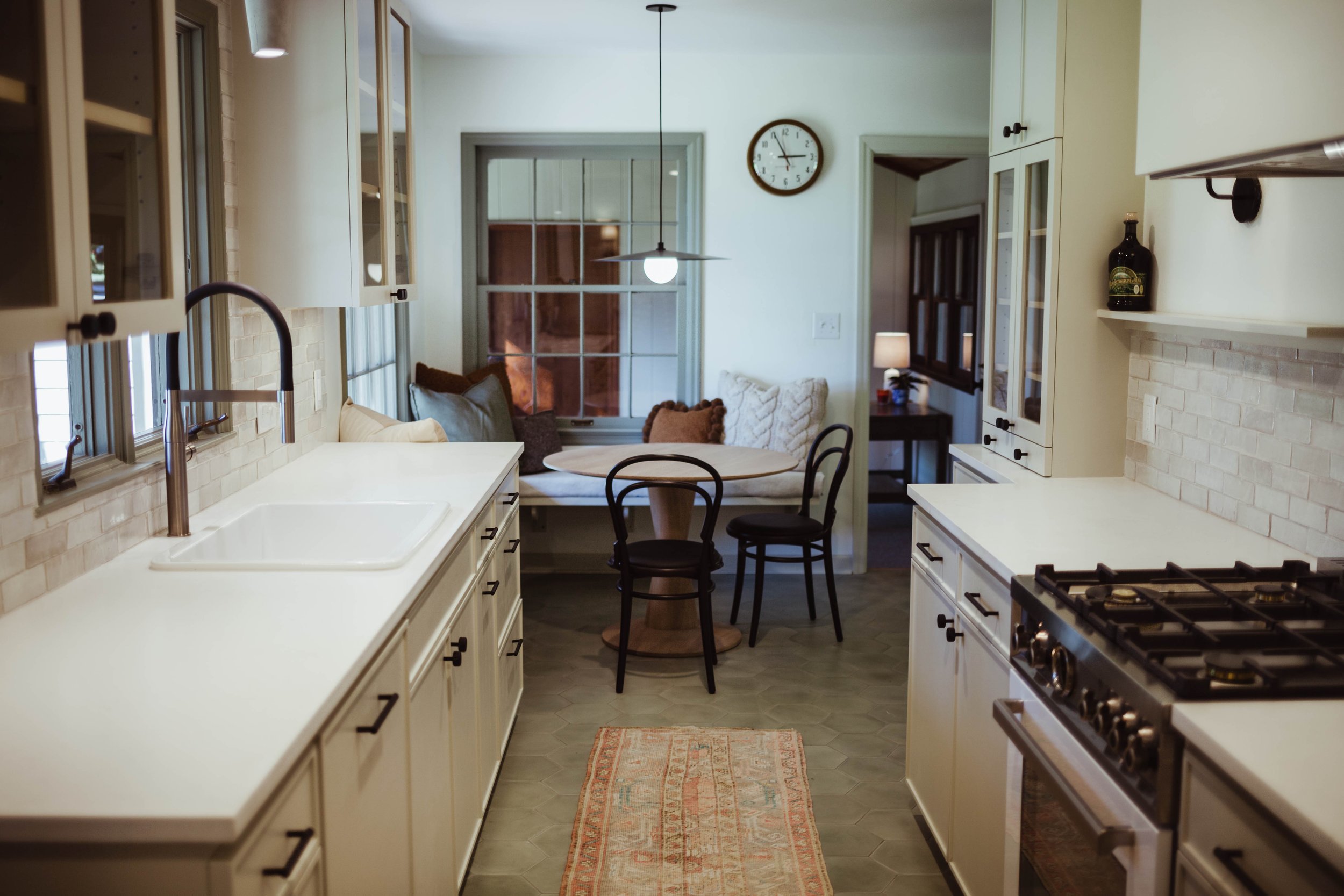 The interior required wallpaper removal, patching on original plaster walls, and repainting services were essential. The lighting fixtures were selected to artfully combined old and new items, enhancing the overall ambiance. The home was lightly staged for listing photos, and the owners purchased some of the staged furniture to complete their new home.